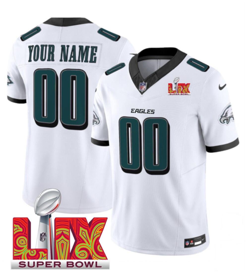 White Philadelphia Eagles Active Player Custom 2025 Super Bowl LIX Patch F.U.S.E. Vapor Limited Stitched Football Jersey – PEL139